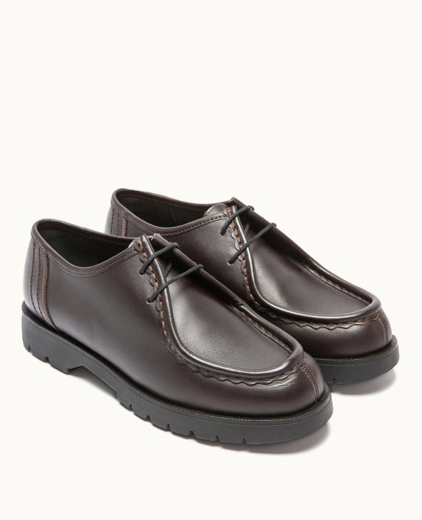 Icône du vestiaire utilitaire français, la Padror de Kleman s’impose comme une référence du soulier robuste et intemporel. Dans cette version Marron + Noir, elle revisite son héritage professionnel avec un contraste de cuirs subtils et une allure plus contemporaine.